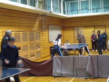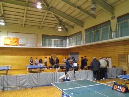 3月3日、第2体育館で「第3回北野カップ卓球大会」が開催されました。日ごろ学校コミュニテイプラザ事業に参加されている社会人の方と、北野中学校卓球部との親睦及び競技力向上を目指した卓球大会です。優勝したの卓友・仁和合同チームでした。優勝商品の公式球を卓球部に寄付していただきました。