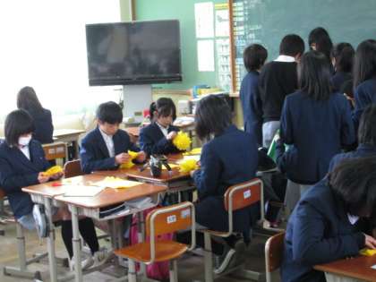 3月4日6限、1年生は「3年生を送る会」の取り組み中です。お世話になった3年生の先輩に心を込めて。