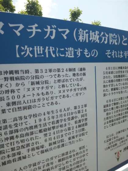 沖縄本島には約2000の石灰岩で形成された鍾乳洞があり、それらは沖縄方言で「ガマ」と呼ばれる。太平洋戦争の末期に起こった沖縄戦では、住民や日本兵の避難場所として、また野戦病院として利用された。現在ひめゆりの塔が建っている沖縄陸軍病院第三外科壕跡も、そうしたガマのうちの一つである。(ウィキペデアより)