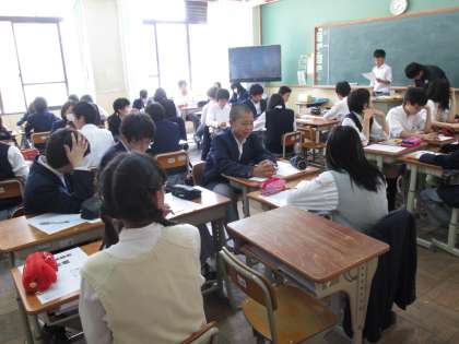 5月15日6限、2年生の生徒総会議案書討議の様子です。