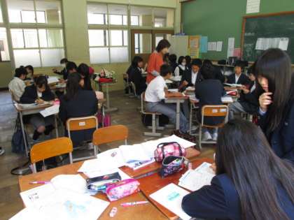 5月18日土曜日、2年生土曜学習の様子です。53名(49パーセント)の生徒が参加して意欲満々です。