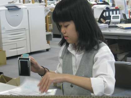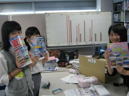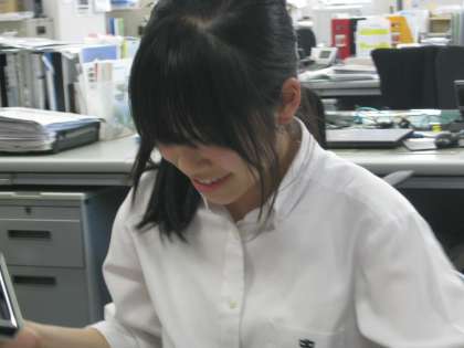 6月5日、2年チャレンジ体験。教育旅行「トップツアー」では事務作業(パンフ不レットの整理)中。