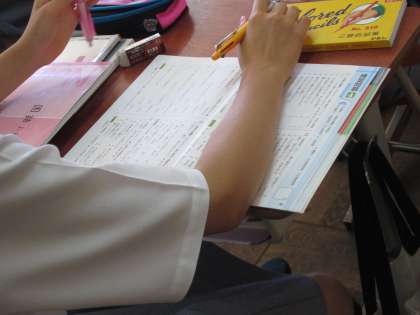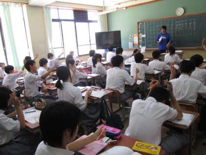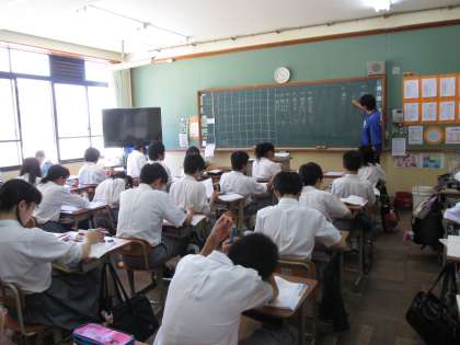 6月14日2限、2年1組は国語の授業です。『文法』の学習中。