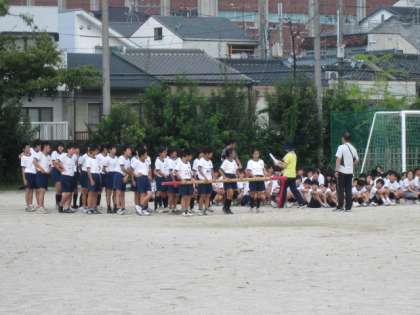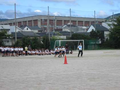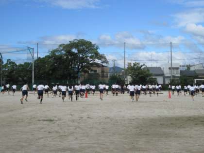 9月5日、1年生は1限・2限に体育大会の学年練習を行いました。学年団体種目『バンブーサーフィン』の練習中です。