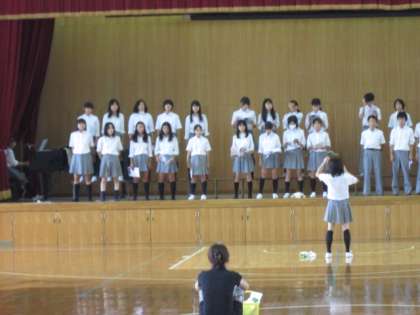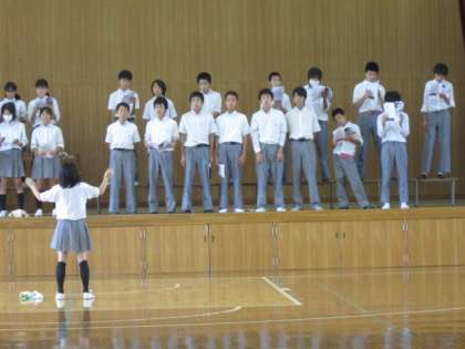 9月6日、2年制合唱練習。体育館の練習はまだ自信がなさそうです。合唱練習5日目終了。