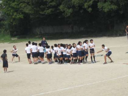 9月13日3限、体育大会の色別練習がありました。暑い中、頑張ってます。