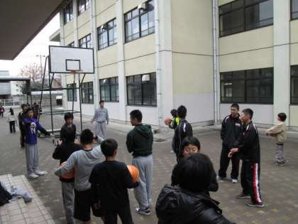 男子テニス部、女子バスケット部、男子バスケット部の体験の様子です。