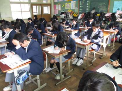 12月11日学習確認プログラム2日目、理科のテスト中です。来週から三者懇談が始まります。