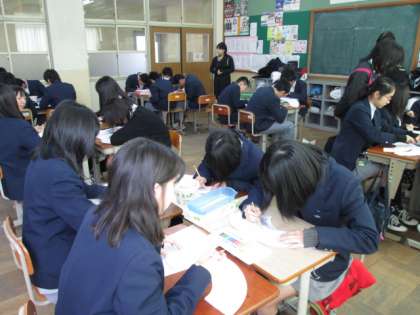 12月17日、3年生は美術課の「きらめき創生授業」で「扇子」を作りました。外部ボランティアの方が10名来校されて、扇子づくりを教えてくれました。