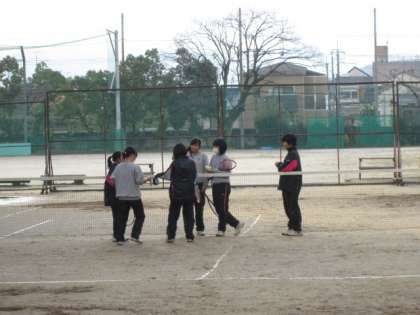 12月19日放課後。昨日の雨でグランド状況は悪いですが、放課後の部活動は頑張っています。教室は三者懇談中です。