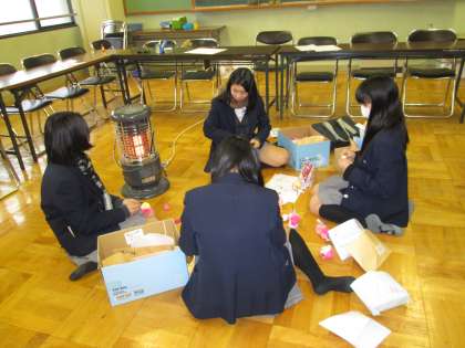 2月6日放課後、生徒会室では3年生に送る「コサージュ」の修正をしていました。寒い部屋で頑張ってます。