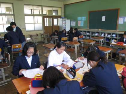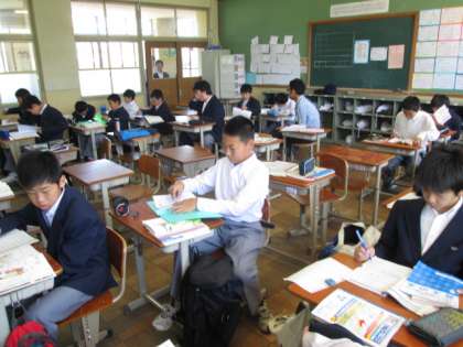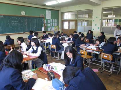 5月17日、1年生は土曜学習に70人を超える生徒が参加しました。4教室を、「教え合うクラス」「静かに自主学習するクラス」に分けて頑張っています。