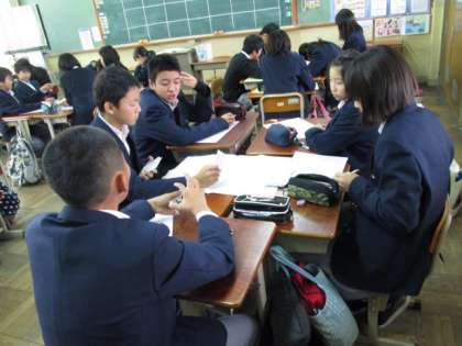 12月3日6限、1年生は人権学習を行いました。「『平等』て何だろう?」しっかり考えると難しい内容です。校長先生も一緒に考えました。
