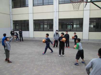 バスケット部は男女とも試合で多くの中学生がいませんでしたが、3年生と在校生で楽しく体験できました。