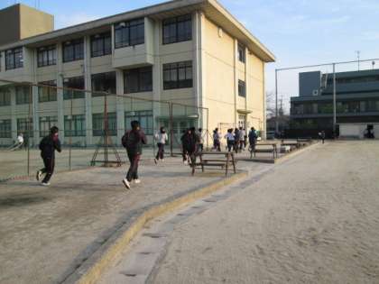 3月4日放課後、風が少し強いのでまだまだ寒いですが春を感じる夕方です。卒業式まであと10日。3年生も何人か部活動に参加しています。