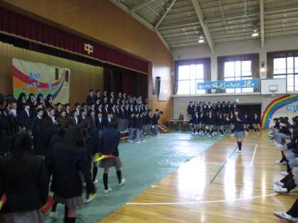 2年生は『Story』をプレゼントしました。「一人じゃないから 私がキミを守から あなたの笑う顔が見たいと想うから…」2年生は北野中学校の伝統をしっかり引き継いでくれています。