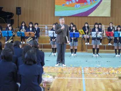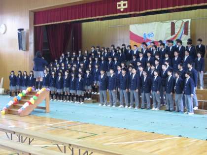 3年生からは『ボクノート』が在校生に送られました。「…ありのままの僕を君に届けたいんだ 探していたものは目の前にあった。」3年生の想いが在校生に伝わったことでしょう。最後に『旅立ちの日に』を力強く在校生に送りました。