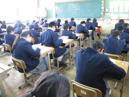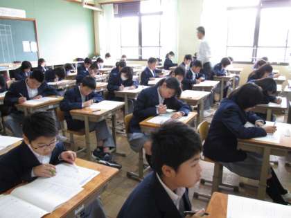 4月9日6限、1年生はジョイントプログラムの数学を受けています。5限には国語も受けました。小学校での学習のまとめとして国語と数学のテストを行っています。これからの学習のためのテストなので、できの良い悪いは関係ありません。明日からの授業を頑張っていきましょう。