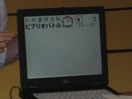 中央図書館で体験中の2名の生徒は『ビブリオバトル(知的書評合戦)』実践練習中です。