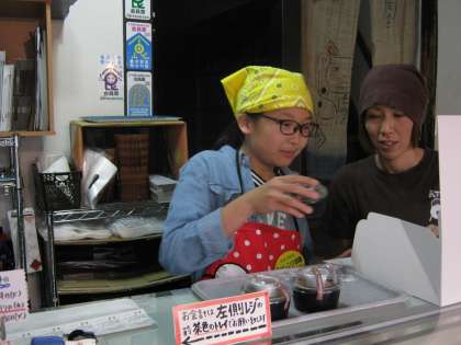 凡蔵七本松店では2名の生徒が体験中です。『ドーナツおいしいですよ』