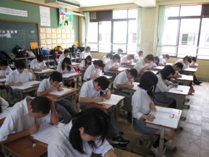 3年生は、3限理科のテスト中です。