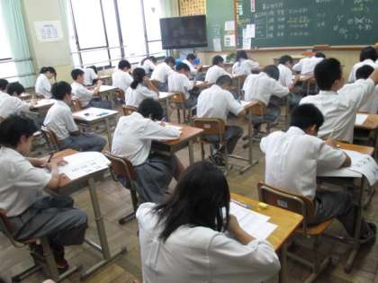 第2回テスト3日目3限。1年生は美術のテスト中です。
