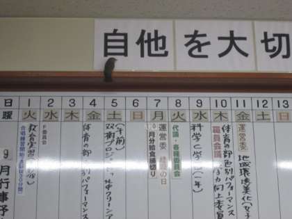 9月18日、朝学活のとき1年2組に小鳥が舞い込みました。ぐったりしていましたが、職員室で休憩していたら元気になって飛んでいきました。