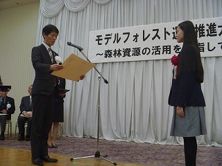 2月5日、北野中学校3年生女子が『平成28年度愛鳥週間用原画ポスターコンクール』に於いて環境大臣賞の授賞式がルビノ京都堀川で行われました。授賞式は『モデルフォレスト運動推進大会』の中で行われました。環境大臣賞は全国の中学生で1名だけの受賞です。