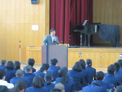 今日は北野中学校の創立記念日です。北野中学校は昭和22年5月、京都市立第二商業学校内に併設され開校しました。今からちょうど69年前です。学校の伝統は生徒の皆さん、保護者や地域の方々、教職員の思いや願いによって築(きず)かれるものです。伝統は受け継いでいくものであるだけでなく、創り上げていくものです。そういった意味で毎日毎日が伝統作りです。今年は創立69周年。先輩達が築いてきた北野中学校の良さとは何か、より発展させたいものは何かをこれを機会に考えていきたいものです。