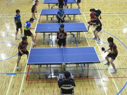 5月3日、卓球部はハンナリーズアリーナで行われた団体戦に出場しました。1回戦は音羽中学と対戦しました。残念ながら0−3で敗れました。