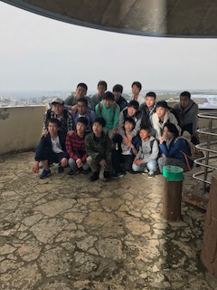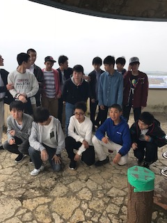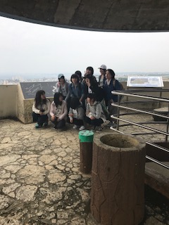 公園の展望台に上って記念撮影です。ここからは、普天間基地や読谷海岸などが見えます。オスプレーも見えたみたいです。
