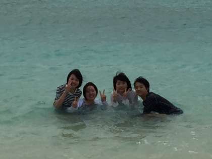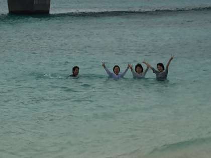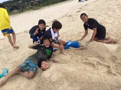 只今古宇利島は21度 風が吹いて寒いです。しかし子供たちは元気です。少々寒いのもどこ吹く風、男子は砂遊び、女子は海の中と形は違いますが南国の海を満喫しています。