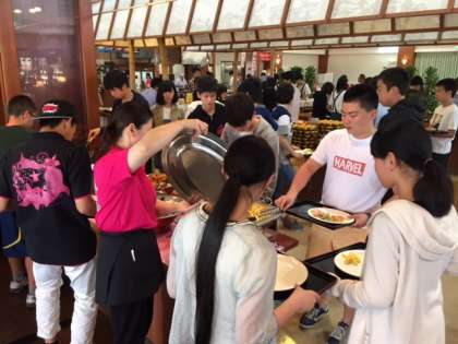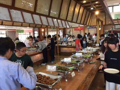 沖縄ワールドで昼食です。またまたビュッフェです。帰りの飛行機が遅いですから、たくさん食べておきましょうね。