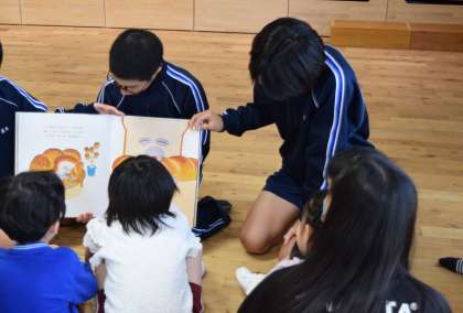 本日、2年家庭科では、保育実習を行いました。「認定こども園みょうりんえん」様にご協力いただき、本校の2年生の生徒たちが園児さんとのふれ合いを通して実習に取り組みました。歳が大きく離れた子どもたちとのふれ合いは、日頃の同級生との接し方よりもだいぶ気を遣う場面が多かったようです。しかし、この気遣いから力加減やペースを読み取ること、表情や動きから様々なことを察することなどを学び取ることができたと思います。