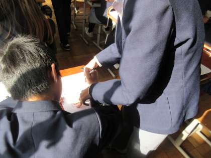 その取組の中では、各自が黙々と一人で取り組むだけではなく、2人で相談したり早く終えられた生徒が他の生徒に手掛かりや考え方を伝えたりする姿もありました。教え合いや学び合いによって学力の定着が期待できると共に、力を合わせて取り組む体験が(都度お互いに小さな正解を確認しながら積み上げていくので)課題解決の実感を強く得ることができ、学習に対する「できる」という学習的自己効力感が生まれることにも繋がると考えます。