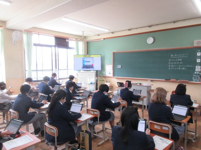本日、3年で全国学力・学習状況調査として英語3技能「読むこと」「書くこと」「聞くこと」と、生徒質問調査を行いました。生徒たちは、GIGA端末を使い(「聞くこと」ではヘッドセットも使い)これらのテストに臨みました。日頃からGIGA端末を使うことに慣れていることもあり、端末の操作にはさほど抵抗なくできていたように思います。