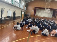 卒業式の予行を終え、大切な学年で過ごす時間を利用して、ご退職される西岡校長先生に...
