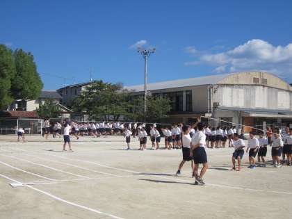 まさに秋晴れ。今日の午後は,体育大会にむけての全体練習です。開会式の流れ,団体競技,そして応援合戦の練習と続いています。