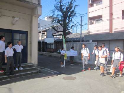 この取組と同時に中学校でもあいさつ運動を行っています。あいさつは,自分から進んで大きな声でできるようになりましょう。