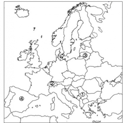 では、ここでクイズです。赤十字マークの配色は、赤十字の創始者アンリ・デュナンの祖国であるスイスに敬意を表して、スイス国旗の配色を逆にしたものですが、ではスイスは次の1〜4のどこでしょう?