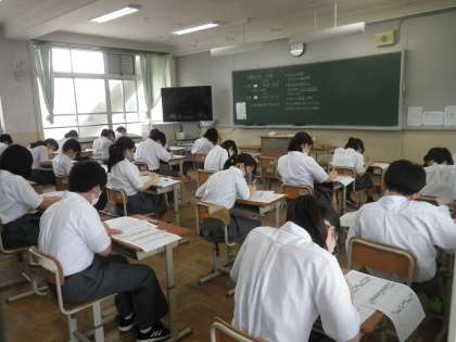 本日予定していた第1回定期テストの1日目が終了しました。1,2限が定期テスト(明日は1,2,3限)で,その後,授業という本日と明日のスケジュールです。1年生は入学後,初めての定期テストなのでとても緊張していましたが,しっかりと取り組めていました。また,2,3年生も緊張感の漂う教室の中で真剣に取り組めていました。明日の定期テスト2日目もがんばりましょう。