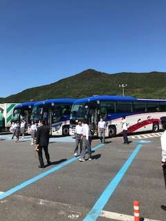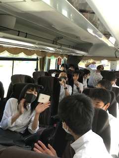牧島までの道中,トイレ休憩のため金立SAに立ち寄りました。バスの車内ではビンゴゲームをして楽しんでいました。