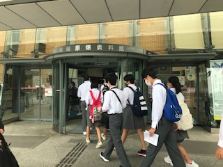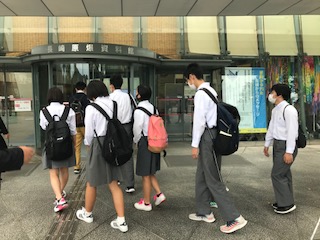 原爆資料館に到着しました。被曝体験講話を聴き、その後、資料館の見学です。