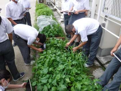 技術科では,今年度より一年生も生物育成に関する技術の実習を行っています。