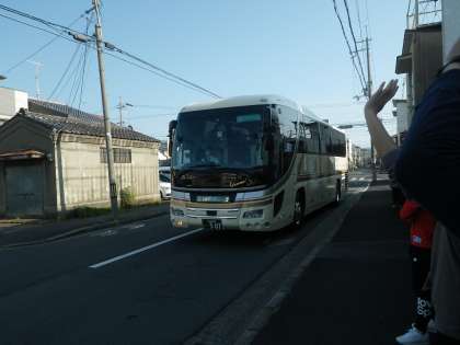 出発式を終えてバスに乗り込み、長崎に向けて出発しました。本日の行程はバスで京都駅に行き、新幹線に乗車。博多駅で下車の後、バスに乗り長崎に入ります。長崎では、平和公園にて平和セレモニーを行い、原爆資料館の見学や平和についての講演を聴きます。その後、宿泊場所であるi+Land長崎ホテルに入ります。思い出に残る修学旅行の始まりです。