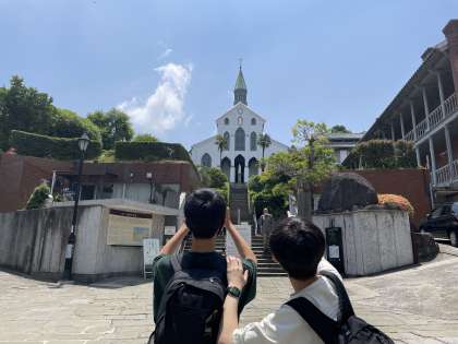 出島や大浦天主堂に見学に来ています。長崎ならではの場所ですね。