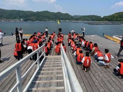 ペーロンとは長崎地方の舟で競争をする行事のことをいうそうで、30人前後が一緒の舟に乗り、息を合わせて櫂を漕ぎます。