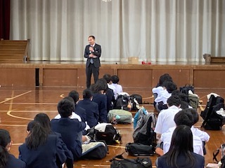 学校長から修学旅行への心構え、大切にしてほしいことをお話していただき、総合学習の担当から2つのミッションについて確認を行いました。そして今回の修学旅行に向けてリーダーシップをとって活動してくれました実行委員のみなさんからの熱い思いがこもったお言葉を語ってくれました。
