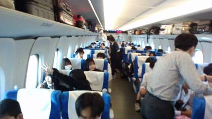 行程通り進んでいます。新幹線の様子です。現在バスに乗り込みました。移動中です。