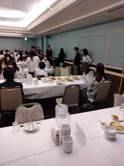 ホテルの方にあいさつの後、夕食をいただいています。